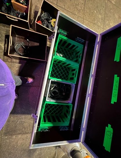 We organised everything into boxes, wrapped up a hundred cables, and Angelo introduced me to their storage system, which is still under development. I was surprised by the vast inventory!
