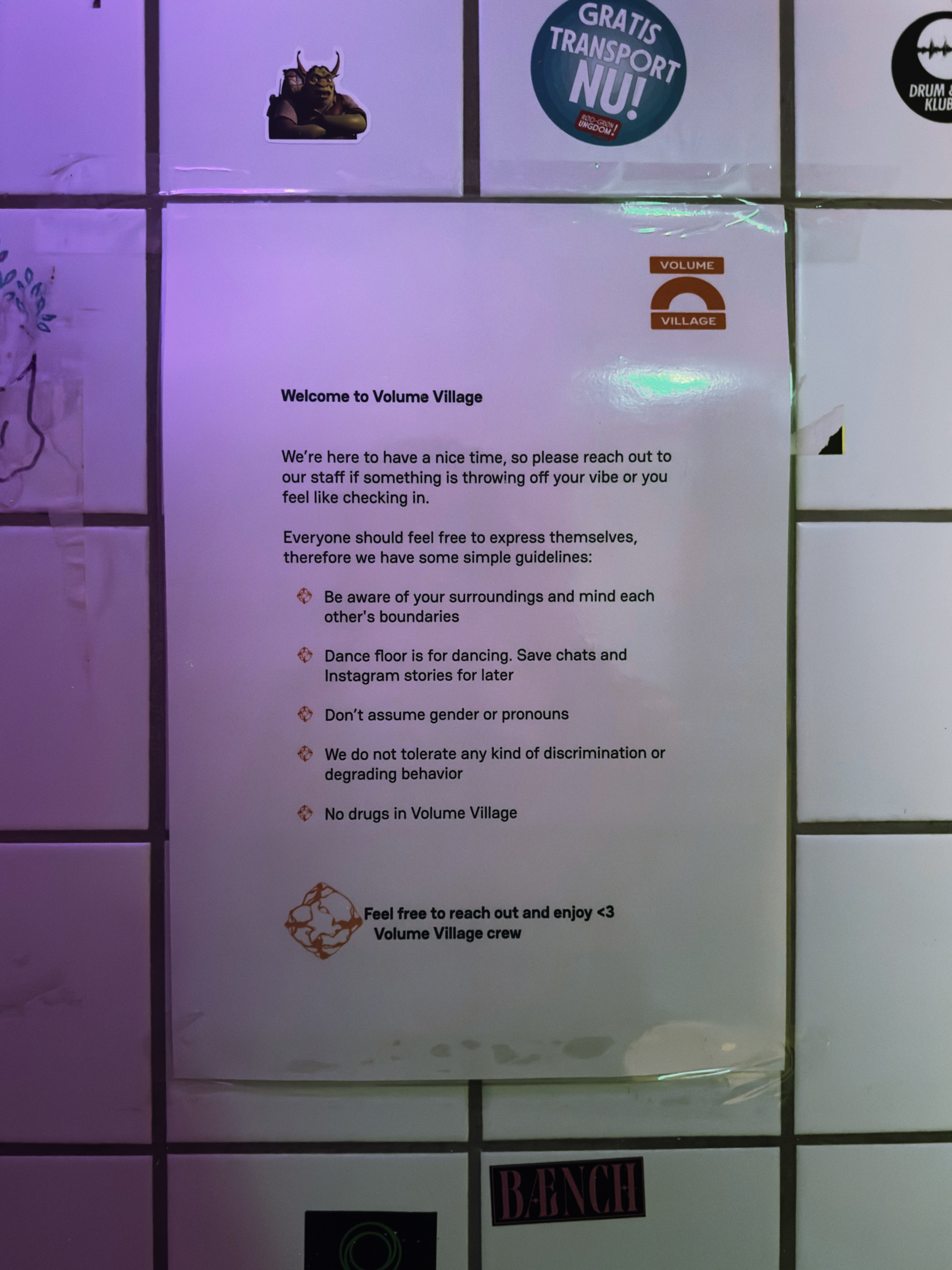 It could be Danish culture, or perhaps just event industry culture? Maybe it is unique to Volume Village.