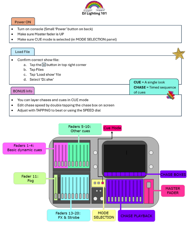 instructions for the lights mixer. This is to aid with accessibility,